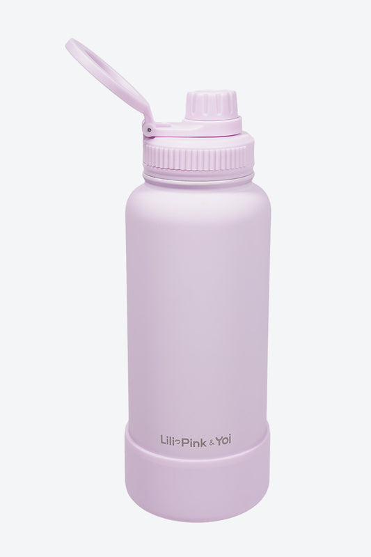 TERMO DE ACERO INOXIDABLE CON SOPORTE PARA CELULAR 2 EN 1 MORADO 950ML