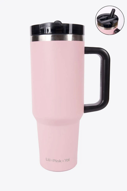 TERMO DE ACERO INOXIDABLE CON SOPORTE PARA CELULAR 2 EN 1 ROSA 950ML