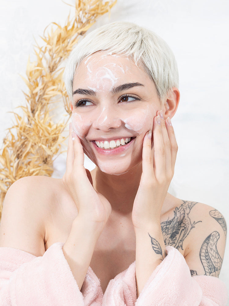 Humedece tu rostro, aplica una pequeña cantidad y masajea suavemente con movimientos circulares. Enjuaga con agua tibia y disfruta de una limpieza deliciosa ✨.